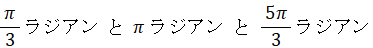 0 以上 2π 未満で、3倍すると π または 3π または 5πになる角度は、次の3つである。
