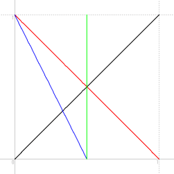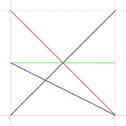 y+1−x−y > x つまり、 x < 1/2 であれば3角形ができる。
