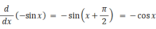 から次々と微分していけば、位相が 90° ずつ進んでいき4回目で元に戻ります。