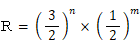0 以上の整数 n と m について 1 ≦ R ≦ 2 となる R を、n を 0 から 1 ずつ大きくして求めていきます。