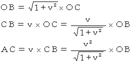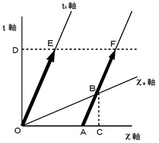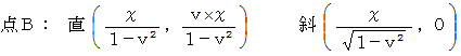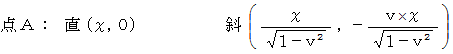 以上の方法は、 まどろっこしい方法でした。 本当は、 点A の斜交座標系のχ座標値 と 直線座標系のχ座標値 とを比較すべきなのですが。 とまれこうまれ、 定説は 「 ローレンツ変換によって空間は