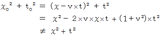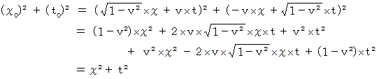 ローレンツ変換は、 時間を虚数としたときに、 4次元時空間距離を不変にする座標変換です。 このことは、 「 固有時間 」 を用いて、 次のように表されます。