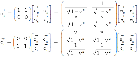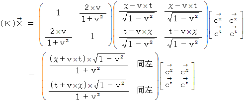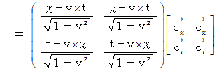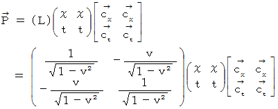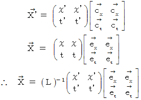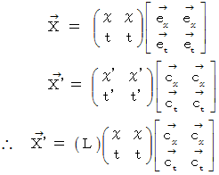 直交座標系から斜交座標系へのベクトルの座標変換の1例として、 「 ローレンツ変換 」 があります。 今は、 光の速さを