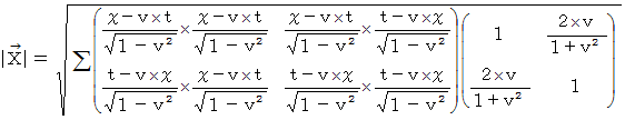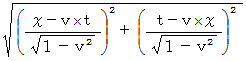 なので、 ローレンツ変換後に静止している慣性系の時間に相当する、 ローレンツ変換で不変なものです。 ローレンツ変換前に速さ
