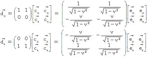 (11) ガリレイ変換とローレンツ変換とでの変換後の基底の比較