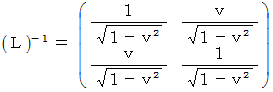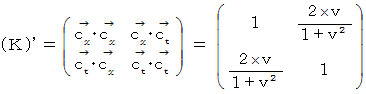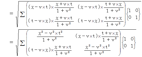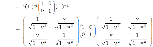 ローレンツ変換前の時空間の計量テンソルの表現行列は単位行列です。 ローレンツ変換後の時空間の計量テンソルの表現行列を