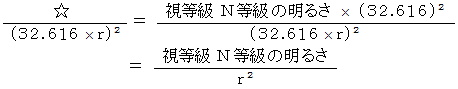 等級になります。 また、 明るさは光源からの距離の2乗に反比例しますので、 視等級