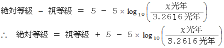 等級 としたわけですから、 絶対等級の値 から 視等級の値 を引くと