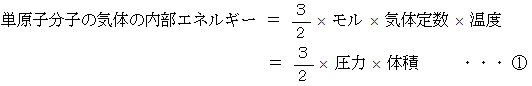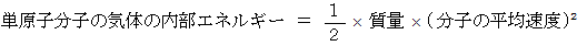 この式の右辺は、 運動エネルギーを表しています。 この式から、 気体の内部エネルギーは、 気体の分子の運動エネルギーの総和である ことがわかります。