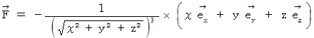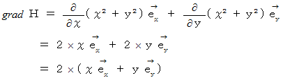 である。 したがって、 このスカラー場の勾配は、 位置ベクトルの大きさの2乗の逆数に等しくて、 位置ベクトルとは逆向きであることがわかる。