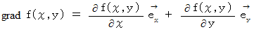 2次元空間における勾配の例は、 地図の等高線上の点を起点とする等高線に垂直な勾配ベクトルです。