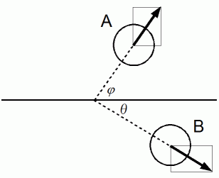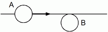 とします。 平らな床の上に直線が引いてあり、 上から見ると、 その直線に接触するように球Bが置いてあります。 そこへ向けて直線上を球A が速さ