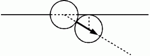 さて、 2つの球が衝突した瞬間には、 球B には、 図2 のような力が作用しますので、 球Bはその方向に運動を開始することになります。