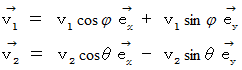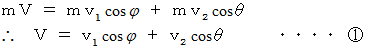 衝突後の A および B の移動を表すベクトルを、 それぞれ次のように置きます。