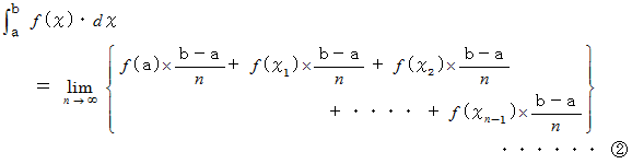 積分の概念には、 デジタル化の考え方と「 極限値ゼロ 」の考え方が入っています。 それはつまり、 人工的なデジタルに「 極限値ゼロ 」の考え方を加えると、 自然的なアナログを作ることができるということです。 積分は次のように定義されます。