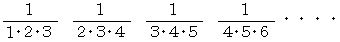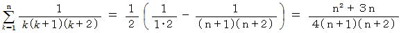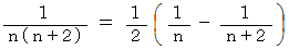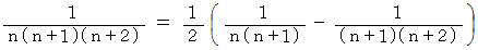 上記の3つの公式をそれぞれ用いて、それぞれの項を部分分数分解して、加えていくと、