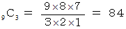 その場合の数は、 9個の楔から3個の楔を選ぶときの組み合わせの数に等しくなります。 つまり、