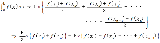 これよりも誤差を少なくしようとするのが台形公式です。 平均法と言っていいかもしれません。