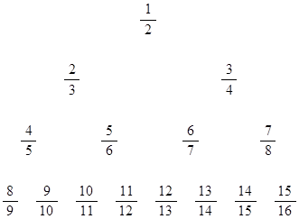 上図は、既約分数がある規則に従ってトーナメント表のように並べられたものです。