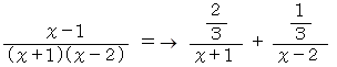 通分の反対は部分分数分解です。 たとえば、