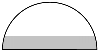 半径1( 直径2 )の半円があり、灰色の部分は半円の面積の 1/3 を占める。