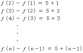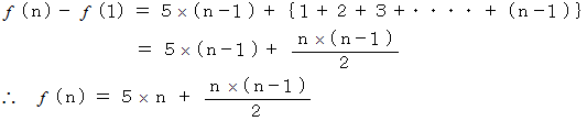 次の数列は、 初項5で、 となり合う2つの項の差が6から1ずつ増えていく数列です。