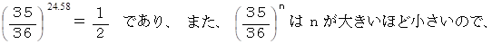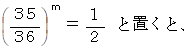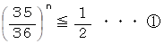 ただし、 log 2 = 0.6931 log 36 = 3.5835 log 35 = 3.5553 とする。