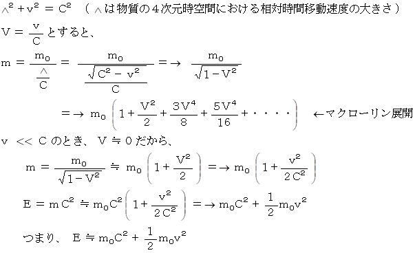静止している物質は、 4次元時空間を相対時間方向へ速さ C で移動しています。