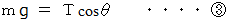 一方、 鉛直方向の力のつり合いより、 次の式が成り立ちます。