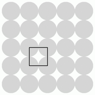 π です。 そしてタイルの面積は 4 です。したがって、 円の密度は