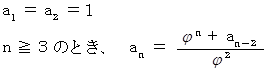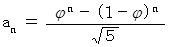 この式も、 フィボナッチ数列が黄金比を用いて表されています。