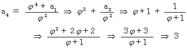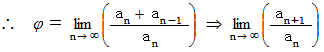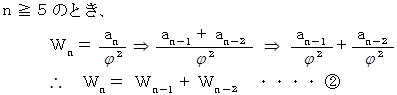 では、 逆に、 黄金比をフィボナッチ数列を用いて表すことはできないものでしょうか? できます。 私の別の論文 「 黄金比 」 を見ていただくとわかるのですが、 黄金比を連分数を使って表し、 それから黄金比の近似値を求める作業をしていきますと、 黄金比はフィボナッチ数列を用いて次のように表されることが解ります。