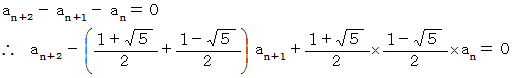 1 1 2 3 5 8 13 21 ・ ・ ・ と続く数列は、 フィボナッチ数列と言われ、 次のような漸化式を持ちます。