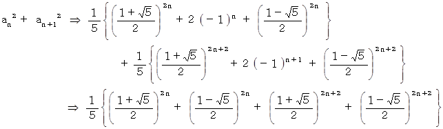 もし、 准フィボナッチ数列ではなくて、 フィボナッチ数列だったなら、 上式は次のようになります。