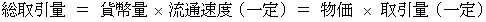 式によると、 物価は貨幣量に比例しています。 なぜ、 流通速度 と 取引量 が一定
