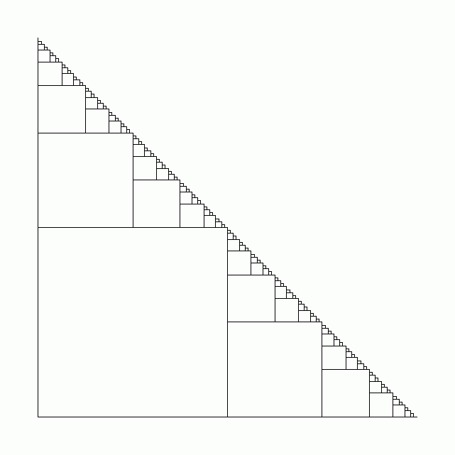 (1) 右辺と上辺に辺の長さが半分の正方形を並べていくフルクタル図形
