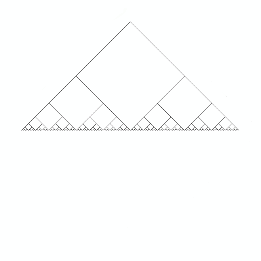 (3) 90度の角度で2分岐するごとに茎の長さが半分になっていくフルクタル図形