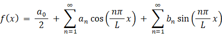 周期 T = 2π の周期関数は、次のようにフーリエ級数展開をすることができます。