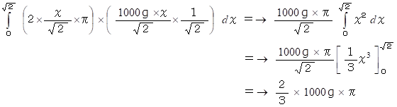側面にかかる下向き水圧の積分は、 次のようになります。