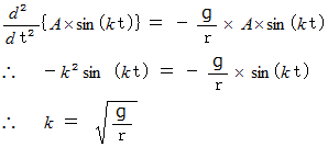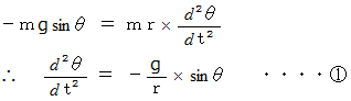 では、 この2階微分方程式を解いてみよう。 しかし、 これは楕円関数という高等技術を用いないと解けないそうなので、 振幅が微小であると仮定して、