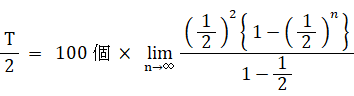 T − (1/2)T = 100個 ×{ (1/2)2 + (1/2)3 + (1/2)4 + (1/2)5 + ・・・・ }