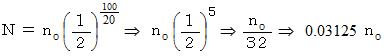 では、 半減期が20年の原子は、100年後には何パーセントになっているでしょうか?