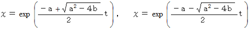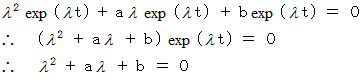 したがって、 この2階微分方程式の基本解は、 次の2つになります。