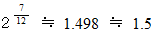 ある音( 音名X )よりも半音で7つ分上の音( 音名Y )は、 平均律でいうと、 振動数はXに比べて