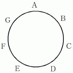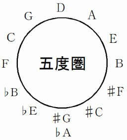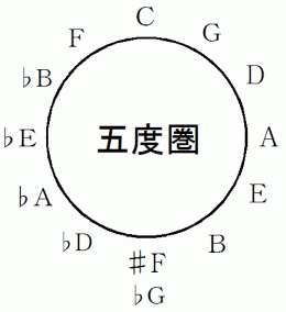 これを音名時計と言うことにしましょう。 音名時計のC の音から開始して時計回りに7つ目の音をピックアップしていき、 それを時計回りに円形に配置すると、 五度圏ができます。
