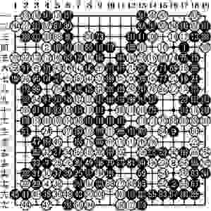 前者は囲碁、 後者は将棋です。 囲碁は格子線( グリッド )の交点に石を置き、 将棋は格子線が作る方眼に駒を置きます。 囲碁の 4の五 は、 左から4番目、上から5番目ですが、 将棋の 4の五 は、 右から4番目、上から5番目です。 そういう意味では、 囲碁は横書き、 将棋は縦書きです。 そういえば、 囲碁は数を争い、 将棋には漢字が登場します。「 二十秒 」