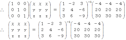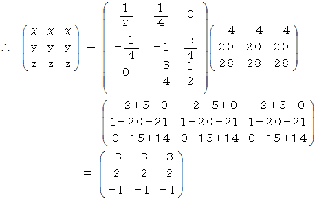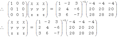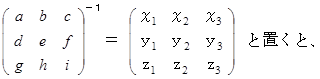 以上の3つの行列を、 それぞれ連立3元一次方程式を解くことによって、 χ