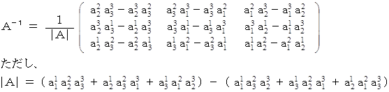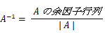 この行列は、 行列Aの余因子行列と言われます。 余因子行列 と 行列式 と 逆行列 には、 次のような関係があります。