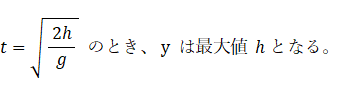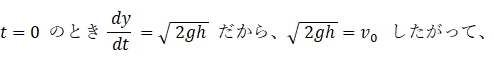 m/s で地面に激突した、ということになる。 時は原点より左向きに遠いほど過去になる。玉の加速度は一定で次のように表される。