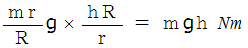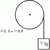 の力のモーメントを作用させなければなりません。 そのためには上記の質量の重りが必要になります。大きな歯車に巻きつけられた物質を